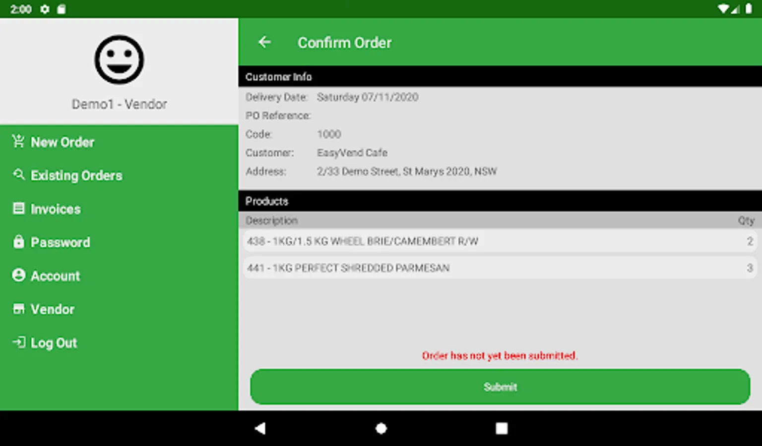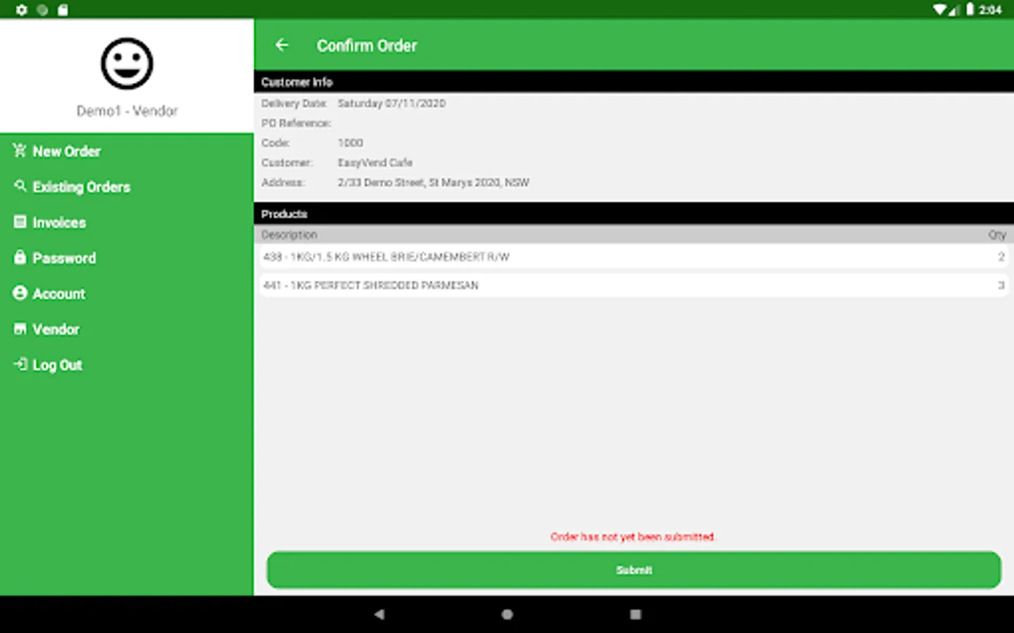 EasyVend Orders Screenshots