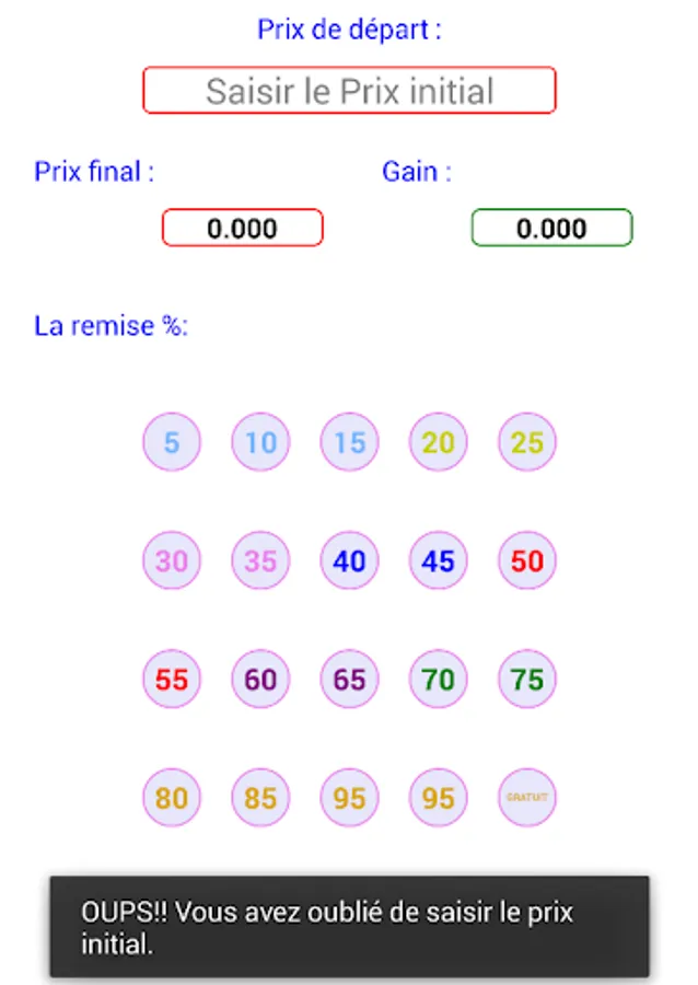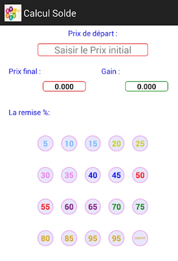 Easy to use, it will suffice to indicate the initial amount and to choose the percentage of discount to be applied.