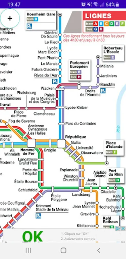 L'application dispose les cartes officielles du métro Strasbourg avec la possibilité de zoomer avant et arrière pour facilite la vue.