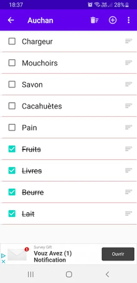 This application allows you to create your events in a list and add your items to the list with the ability to change the name of the event, delete it, check items purchased, delete items one by one or delete them in whole,