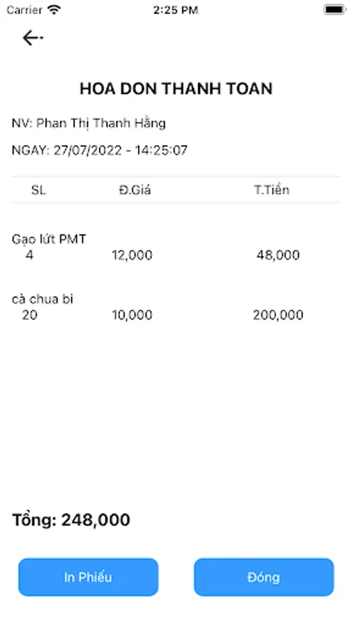 JeeOrder application makes it easy for employees to print invoices when selling or buying goods, helping managers to view revenue and manage goods.