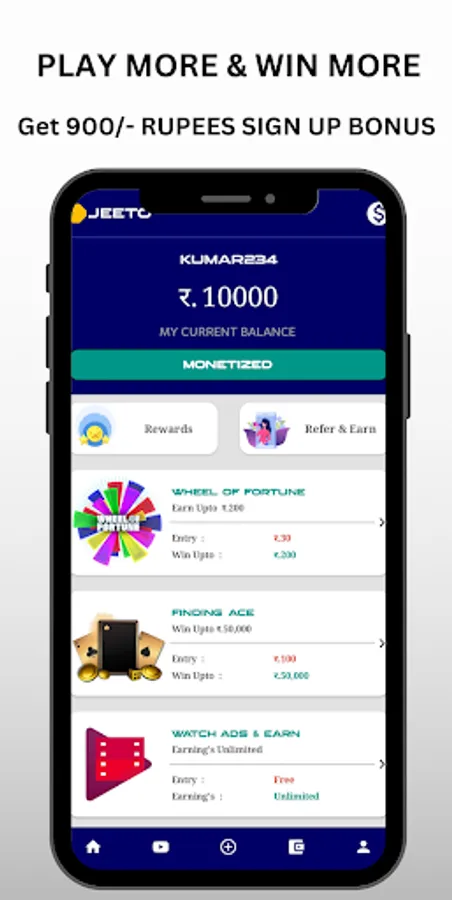 FFor Every New Sign Up User Will Get 900/- Rupees Bonus ,