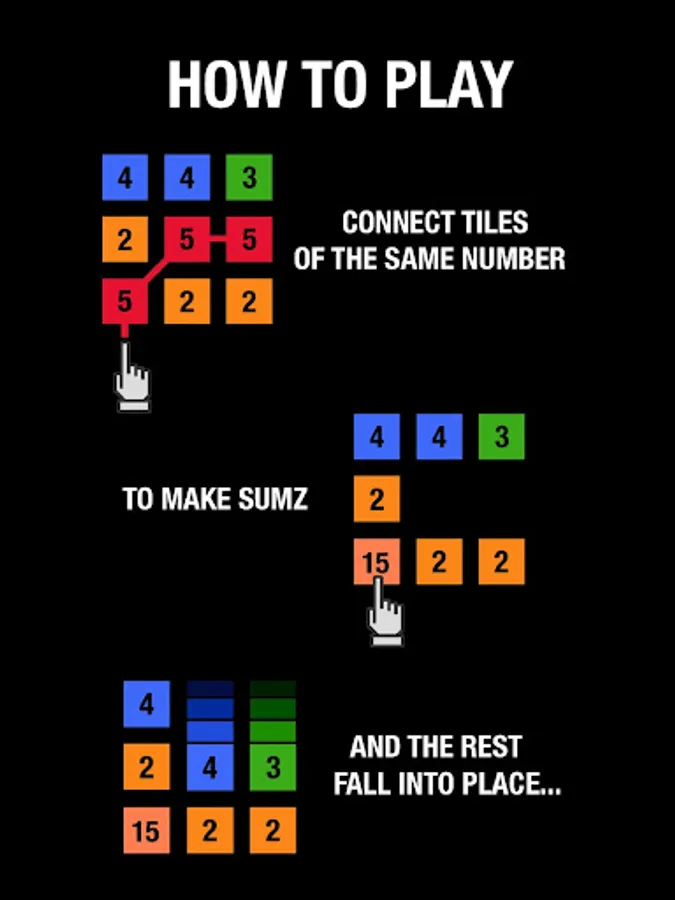The game is simple. Connect like numbers in any direction and create their sum. The more you connect, the higher score you get. The higher numbers you make, the longer you'll last! Once you run out of moves, it’s game over! But you can always play again…