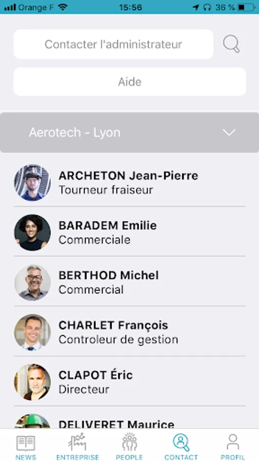 • Contact: access and get to know your entire company (trombinoscope and personal file)