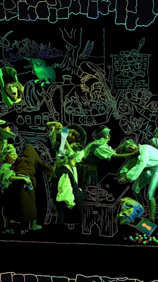 The image of the witch as a fraud leads us to the situation in which we find ourselves: those marginalized by the white-supremacist capitalist hetero-patriarchy continue to be excluded and doubted when it comes to specialized knowledge of healing. We take inspiration from Barbara Ehrenreich and Dierdre English’s 1975 pamphlet, “Witches, Midwives, and Nurses: A History of Women Healers”, which describes a history in which lay healers in Europe, predominantly women, were barred from their practice, though their methods were likely more scientific, safe, and effective than those of the exclusively male healers sanctioned by the church. We insert our own imaginary sub-plots into The Witch of Malleghem, speculating on the alternative pathways through which healing traditions persisted in the face of this suppression. We lean into the surrealism, grotesqueries, and absurdities of the original image and reclaim it with a sense of humour. Laughter, after all, is also a form of medicine.