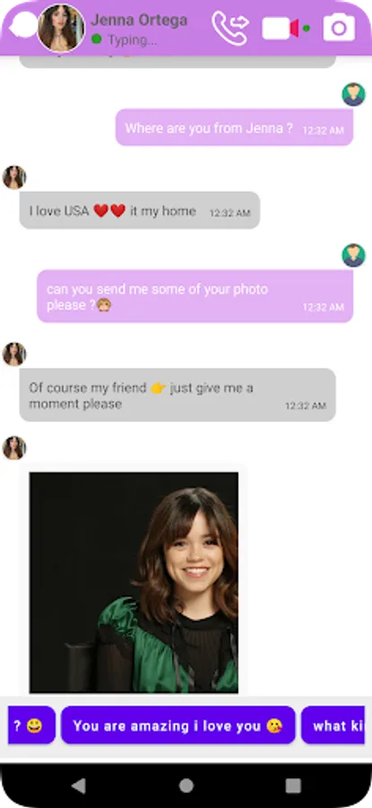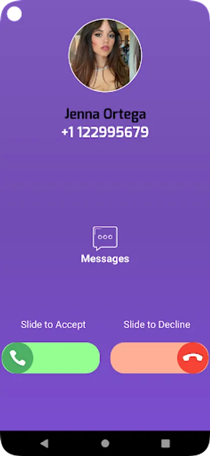 Jenna ortega In wednesday s2 In Fake Call is a prank and it is not an official app, just for entertainment and only for prank, it is 100% fake and simulation just to prank your friends.