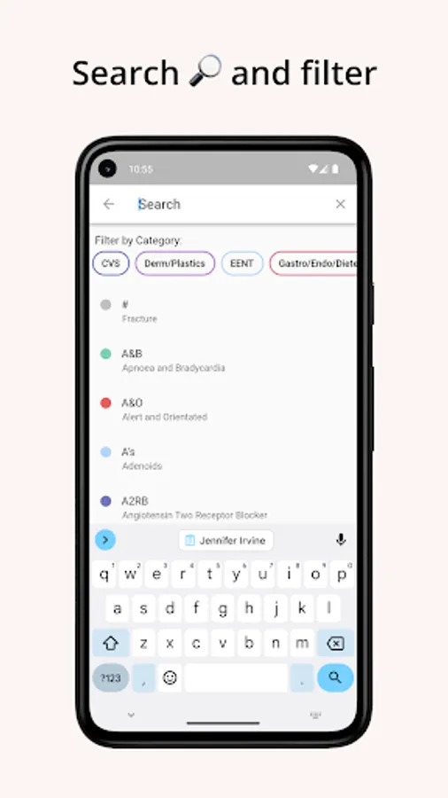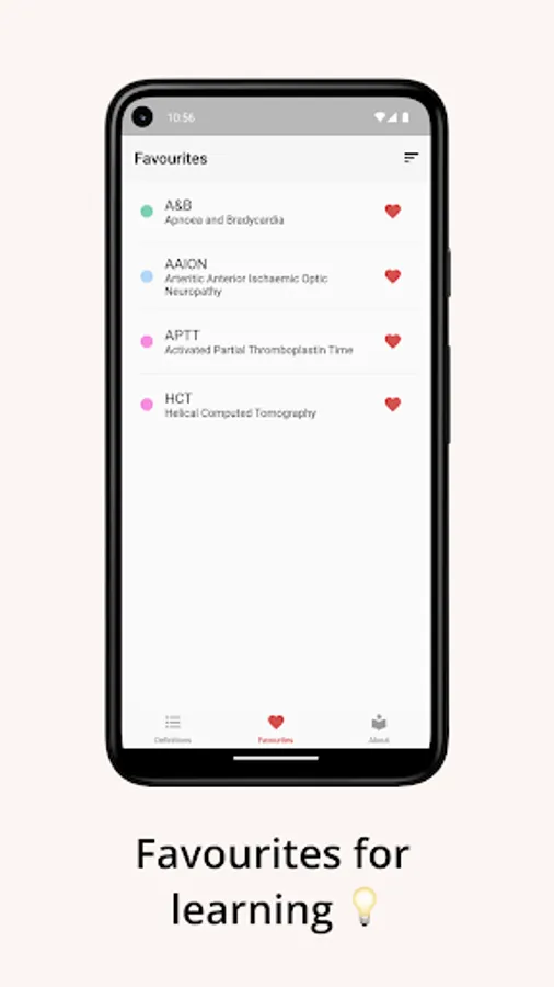 - Easy-to-use interface, with acronyms organized alphabetically and searchable through quick-scroll or by entering the term directly.