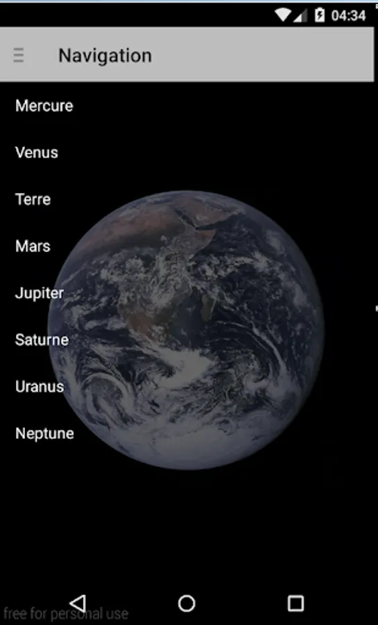 Displays the planets of our solar system. The selection of the planet is via a flyout.