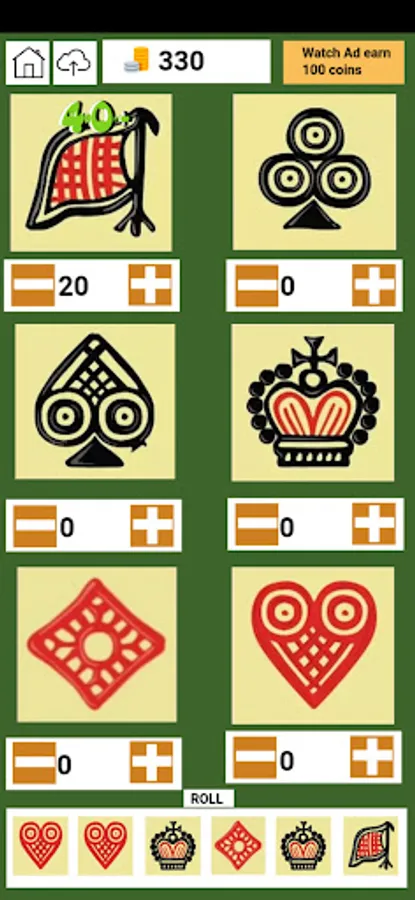 - If none or one of the dices show the symbol which holds a bet, then the host can take the money or bet placed on that symbol.