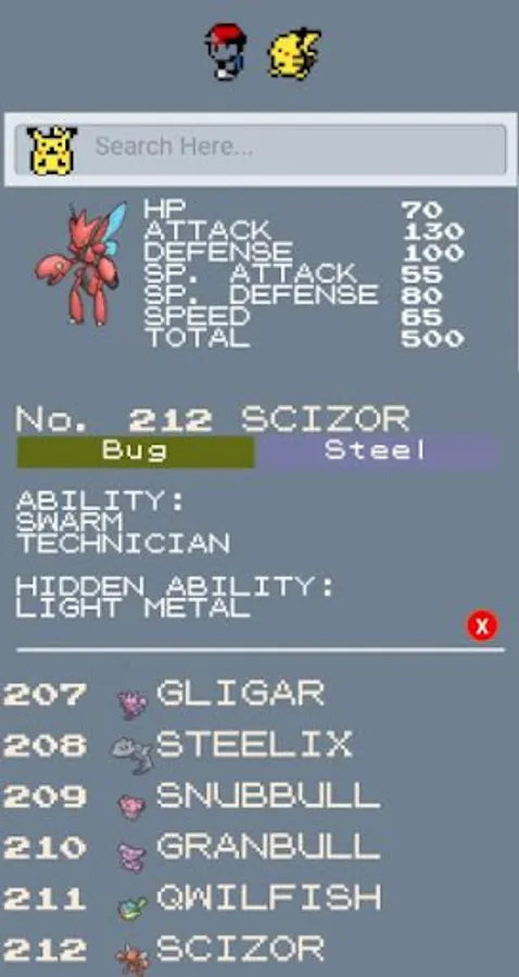This Pokédex shows basic stats, types and abilities of every 809 Pokemon!