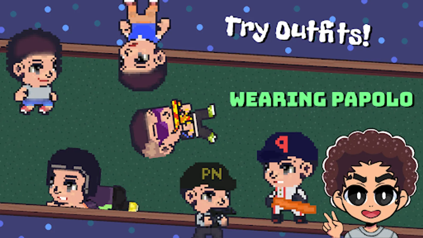 Collect all Papolo's outfits, get to know Dembowsero's, Student's, Baseball player's, Police's clothes and many more!