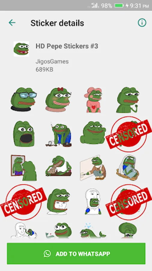 Check out and enhance your WhatsApp conversations with our huge collection of more than 150 high quality Pepe The Frog and Apu WhatsApp Stickers.