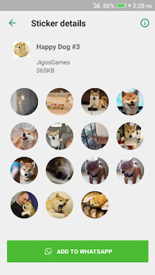 This app contains 4 packages of Happy Dog stickers for you to use in your WhatsApp conversations.