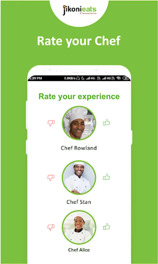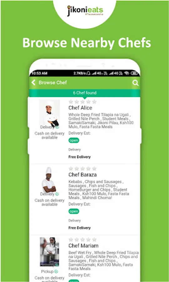 2.Down load Jikoni Eats App, register, search nearby chefs by our