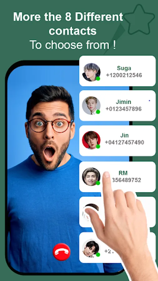 jimin Fake call & call is a fun and entertaining app that allows users to simulate a fake video call with bts Group