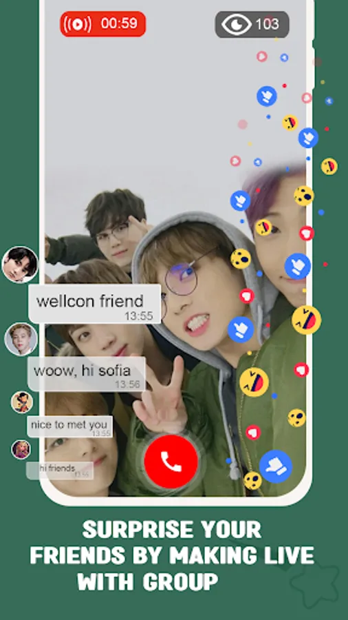 3. start audio call or video call, finally we add a button specially to start live video with jimin