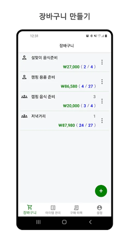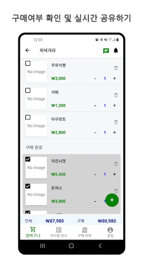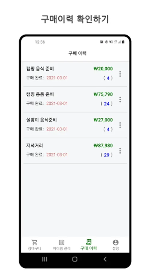 2) Item Management: Create a category, create an item, change the order, check the number of purchases, enter a price, check the purchase history for each item