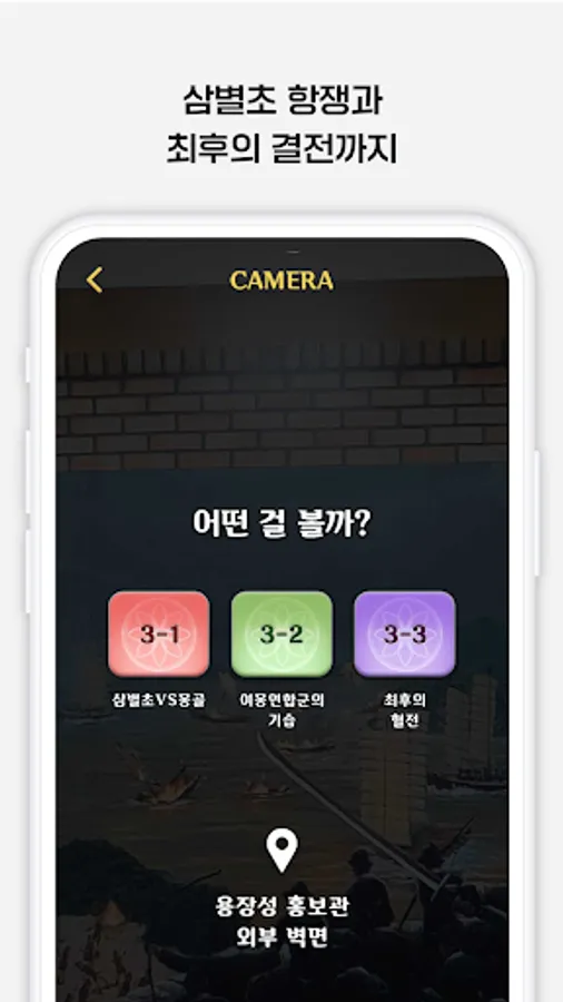 From the moment Sambyeolcho moves from Ganghwa Island to Jindo, and the moment of moving to Jeju after the fall of Jindo Yongjangseong Fortress, the historical moments are realized in 3D AR, so you can share historical moments with Sambyeolcho.