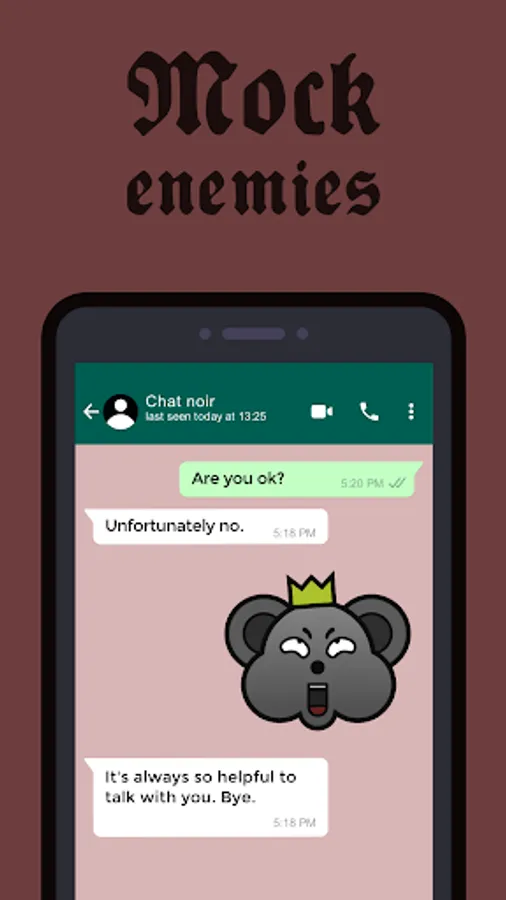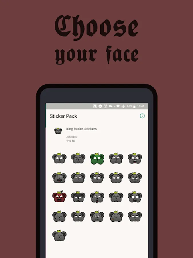Finally the sticker pack of "Banquet for a King" is available for Android! Send King Roden's evil expressions to your contacs on Whatsapp! Rage, envy, luxury, gluttony, greed, sloth, vanity! No happy faces (aside from mockery, you know...) or rainbow unicorns! Search fro WAstickerapps and download your favourite king!
