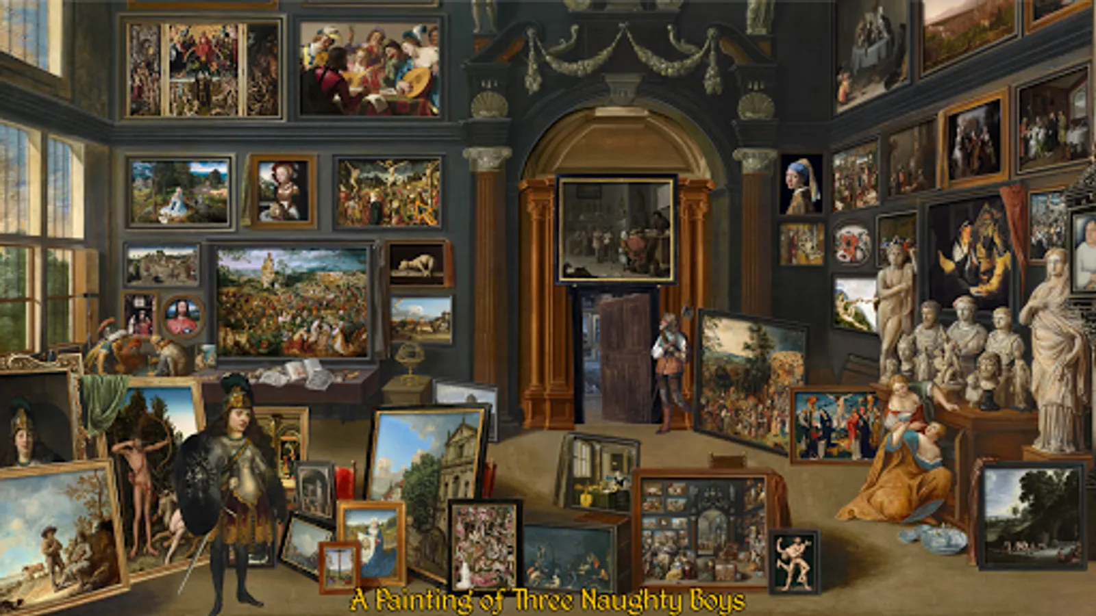 Your journey will take you through a richly detailed landscape built from hundreds of different Renaissance paintings. You will steal a ship, feed a donkey, compete in a talent contest, assist an inept street magician, sing, dance, play the (magic?) flute, poke a man's face, hunt for treasure and have a chat with Our Lord God Almighty... But will you find Heavenly Peter? And if you do, how will you take your revenge!?