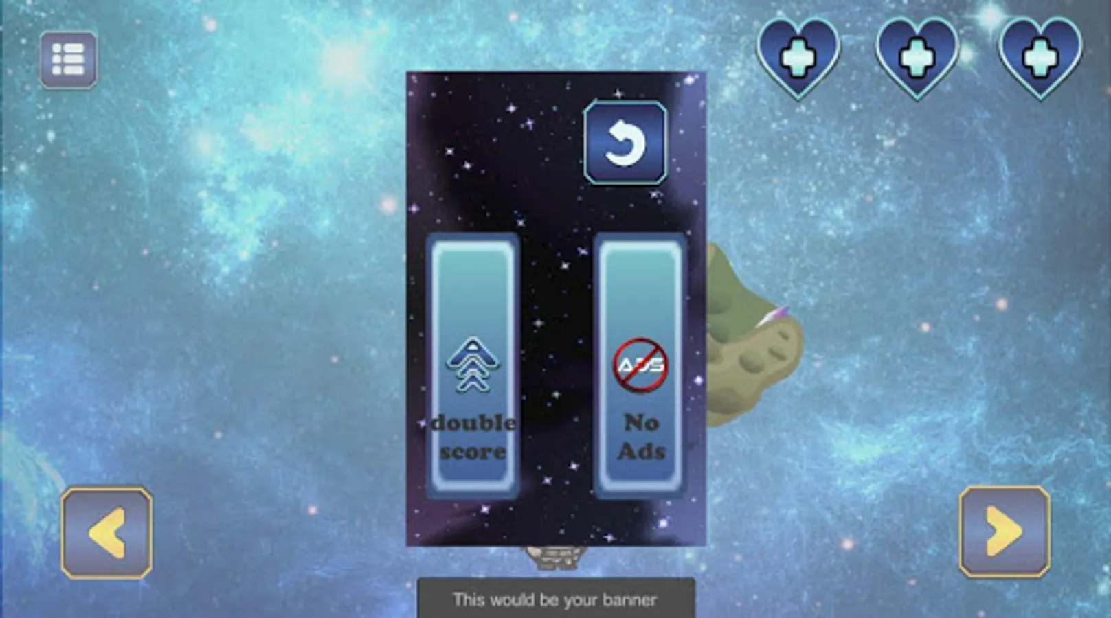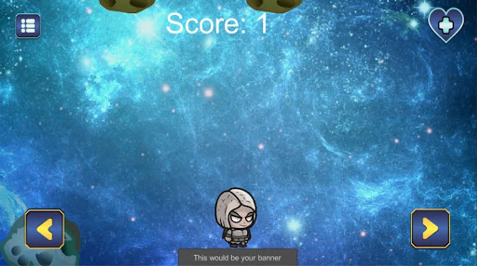 A game that allows you to while away while you are waiting for something, in it you must dodge meteorites, carefully, because you only have 3 HP! Get a bonus to the account for watching a video clip for one game, buy the NoAds parameter if you are tired of advertising