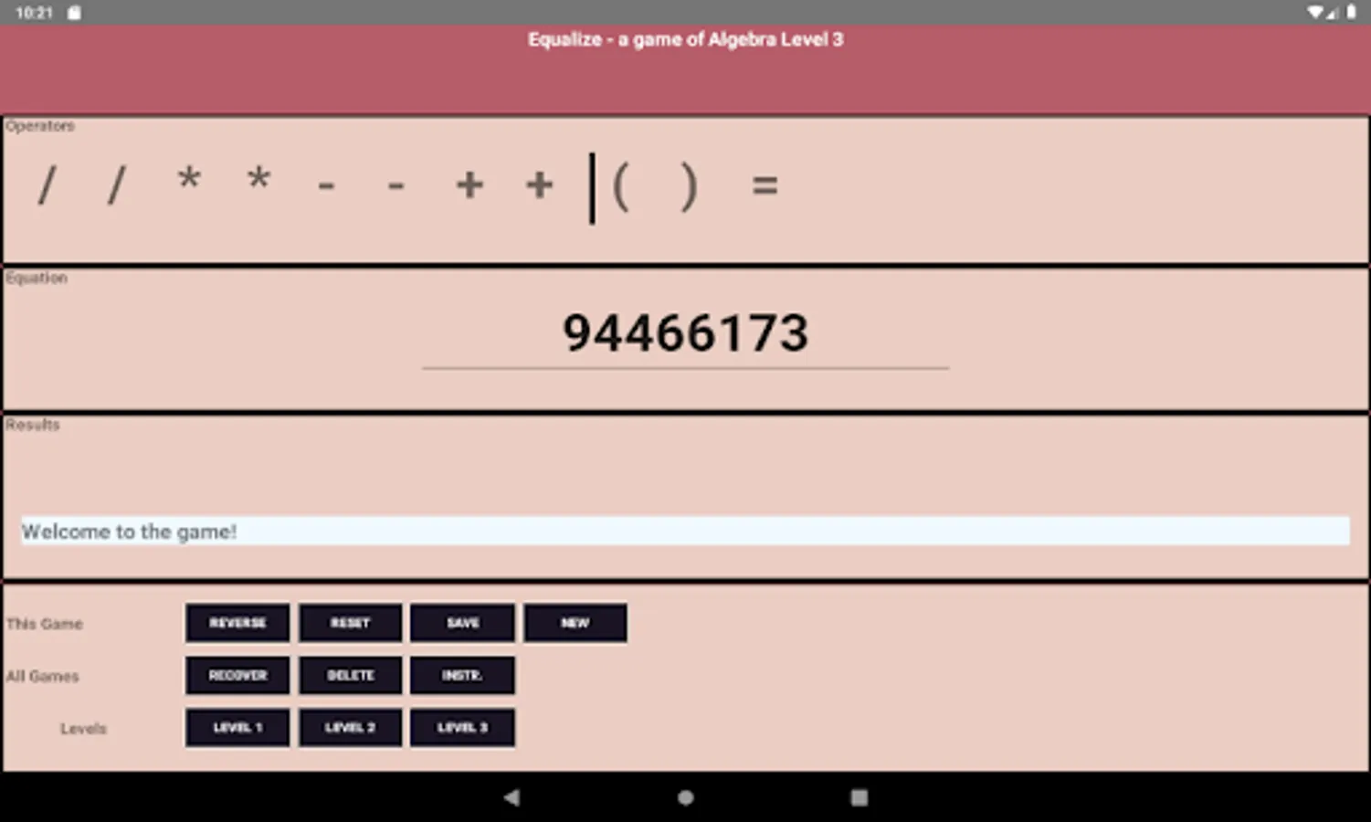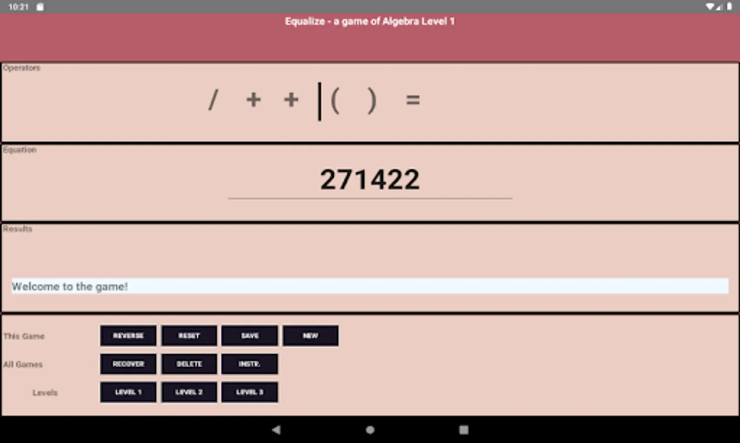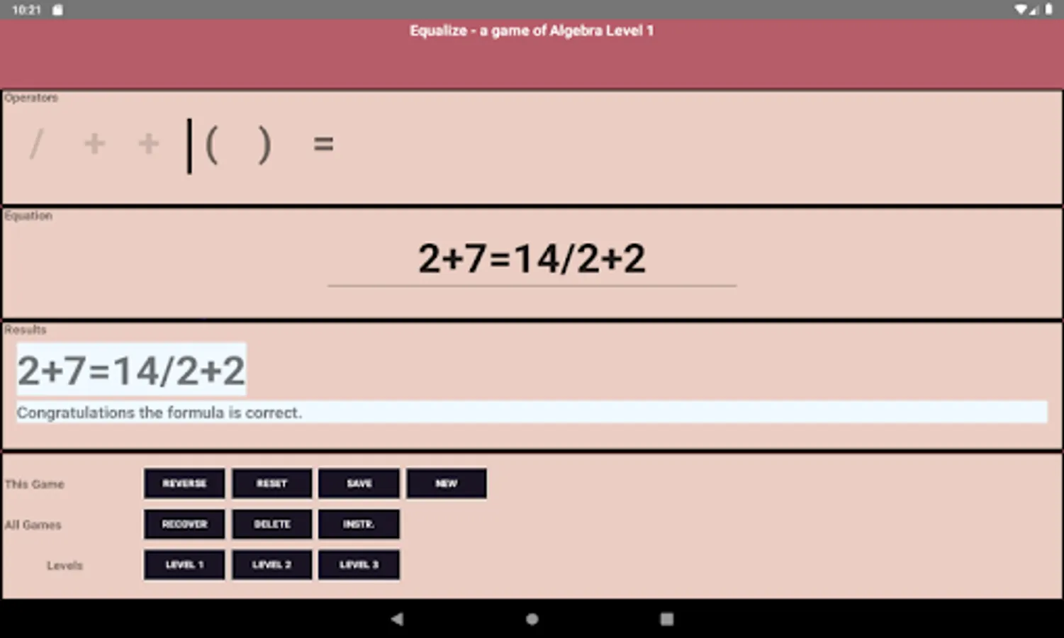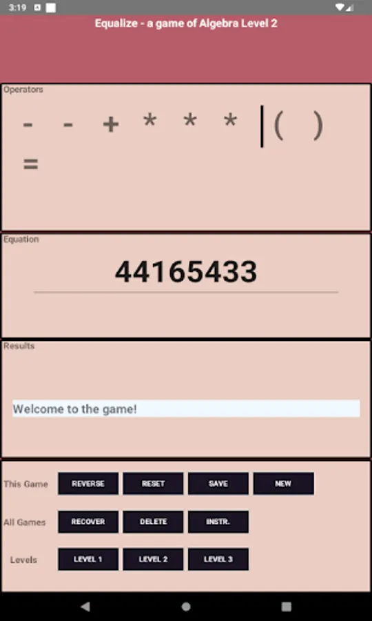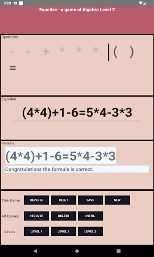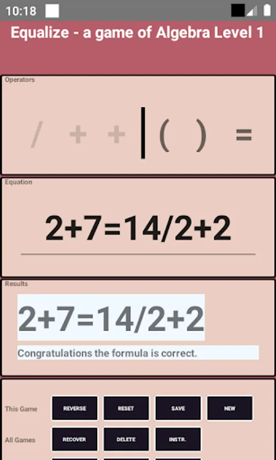 increase in speed and complexity. Equalize is like Sudoku for algebra.