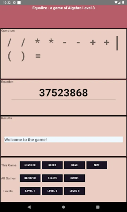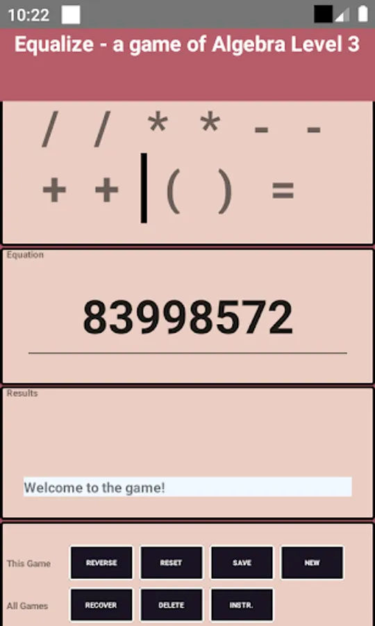 arrange the provided operators until you create a solved equation. In 3 levels: easy, hard and good luck. Send your rapid math solving skills into the stratosphere!