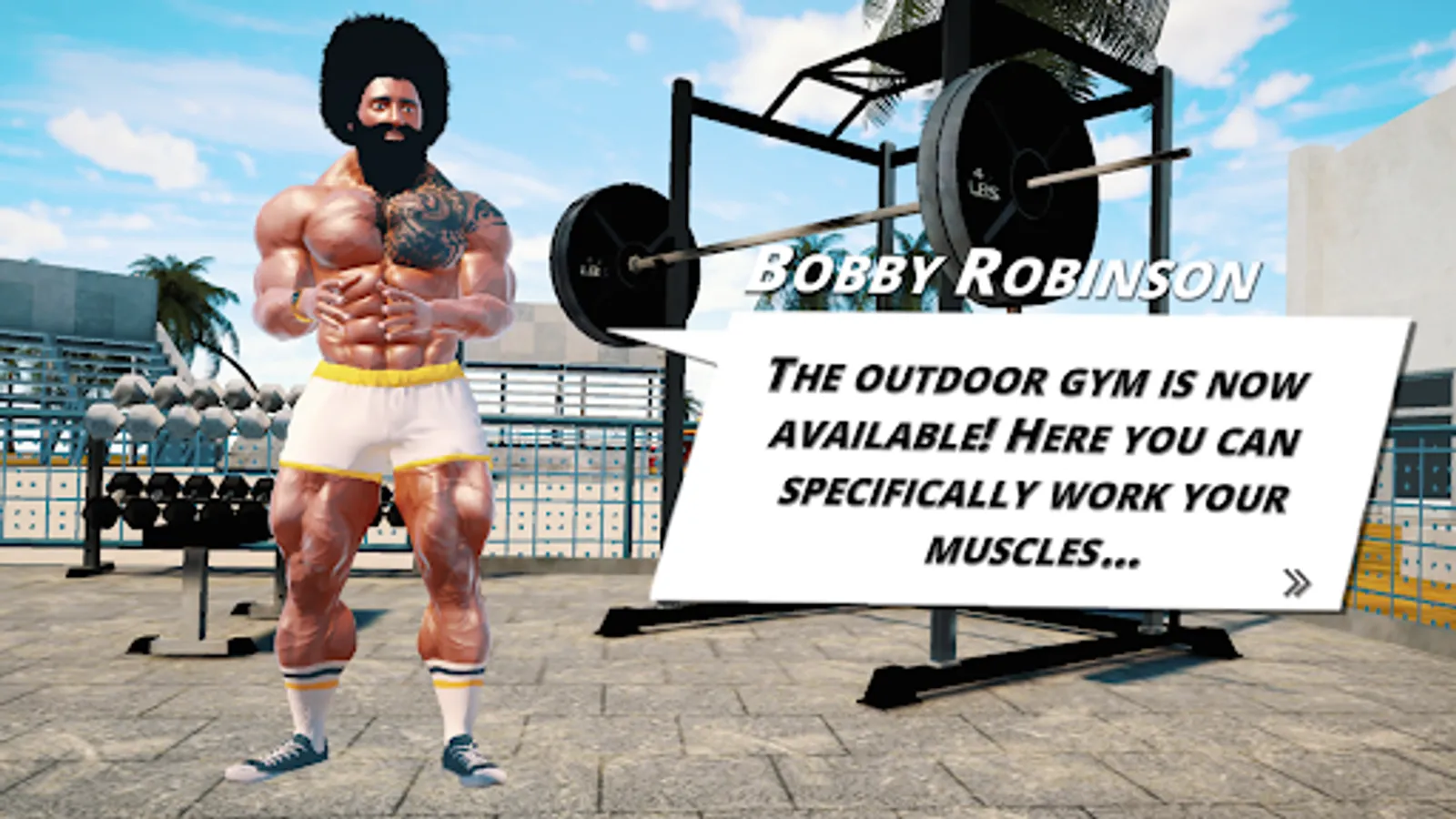 A career mode where players can compete in bodybuilding competitions and earn virtual currency to upgrade their equipment and supplements.