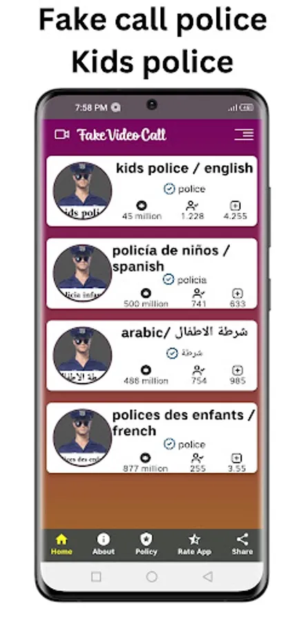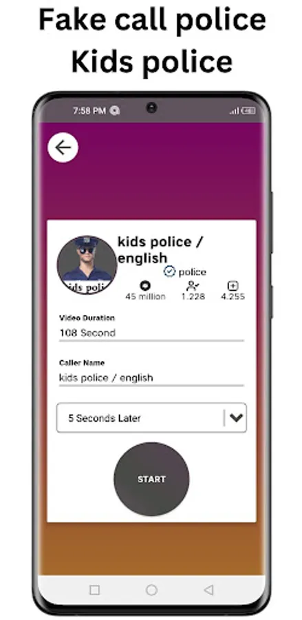 kids police video call app to make a fake call with kids police ,