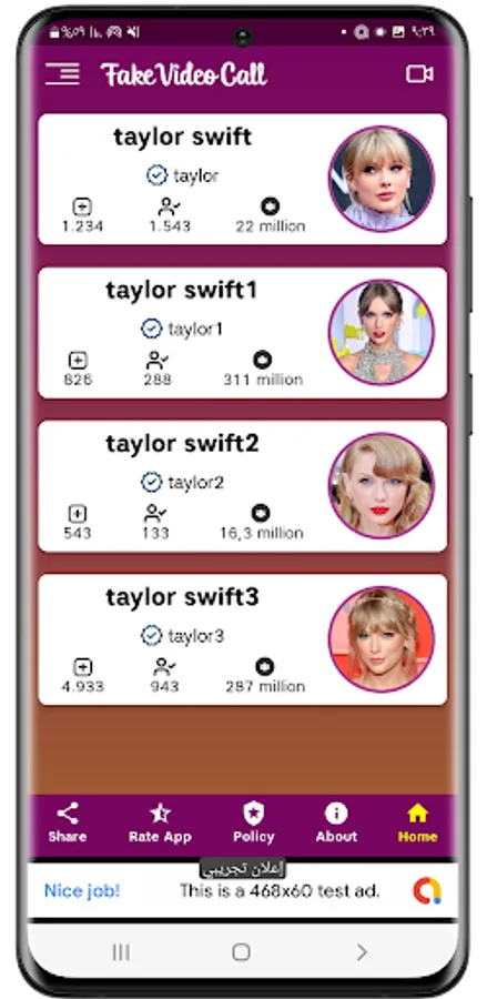 so you can use the app taylor swift video call for free ,and you recive taylor swift fake video call and do a fake video call with taylor swift for free 100%