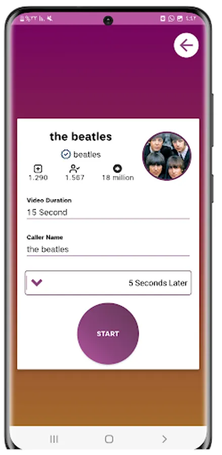 app the beatles video call is very easy to use and make a fake video call with the beatles , the beatles video calling you beautiful app its like the beatles video call game and real call the beatles
