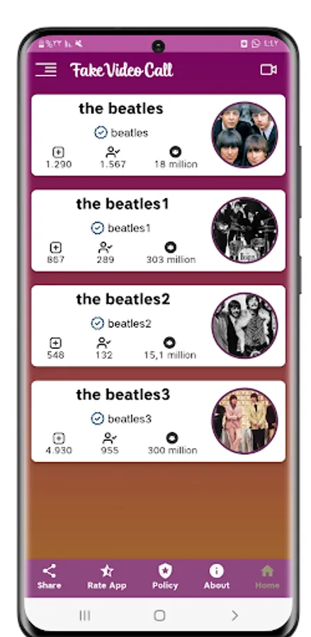 app the beatles video call professional app to make a fake video call with the beatles , the beatles video call prank look like real call the beatles ,