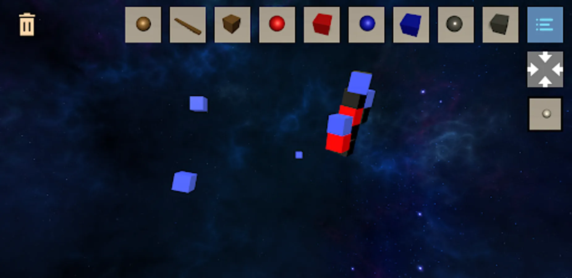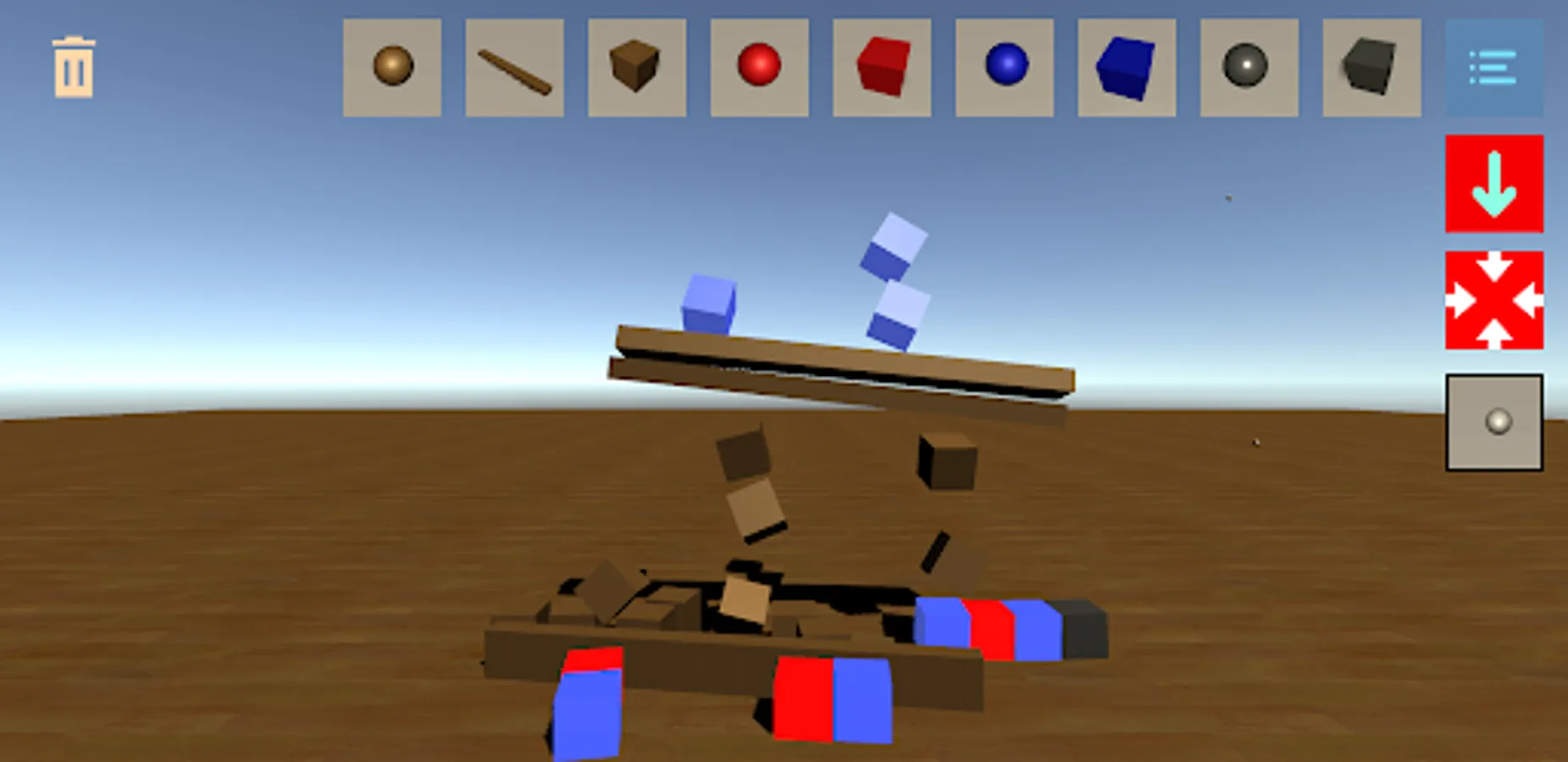 Another thing you can do is rotate the camera around to place blocks anywhere you want. Try turning off gravity and seeing how blocks interact. Also try turning off all the magnets, placing the blocks, then turning all the magnets back on and watch them fly together.