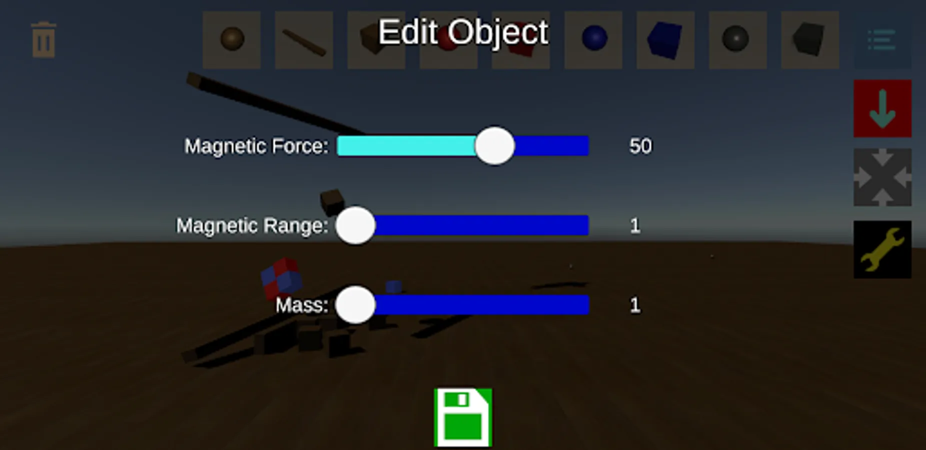 If you really want to get technical, toggle edit mode and tap on a block to change its mass, magnetic force and magnetic pull radius.