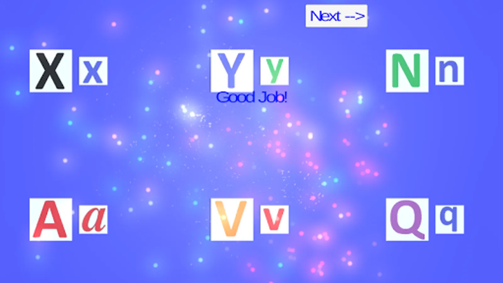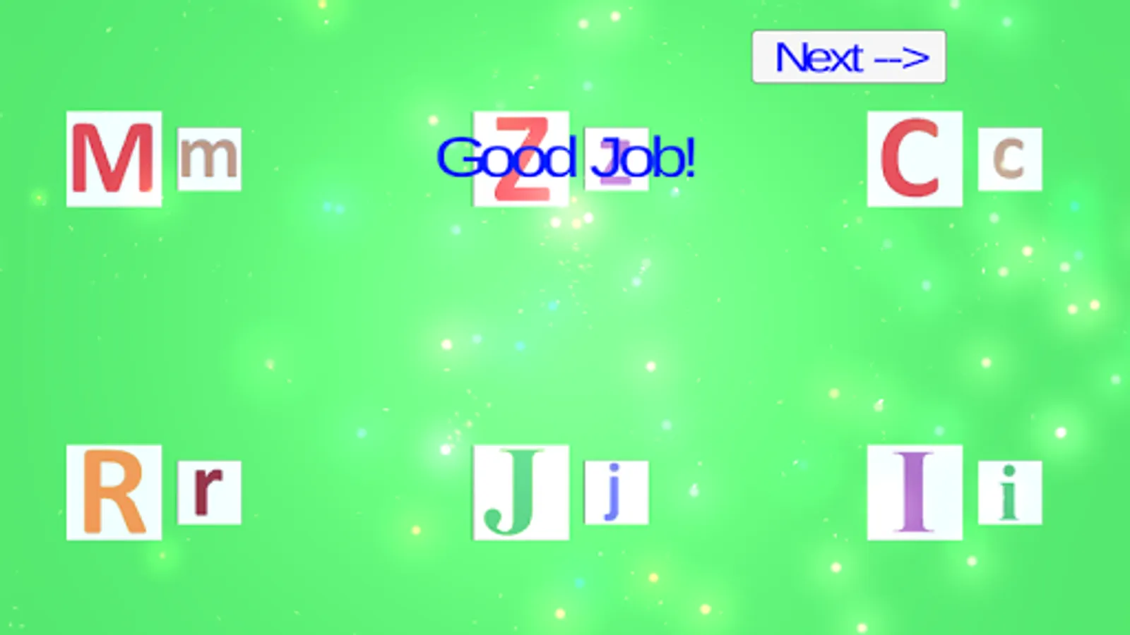 When all the letters are matched "Good Job!" is shown on the screen and fireworks appear a few seconds later.