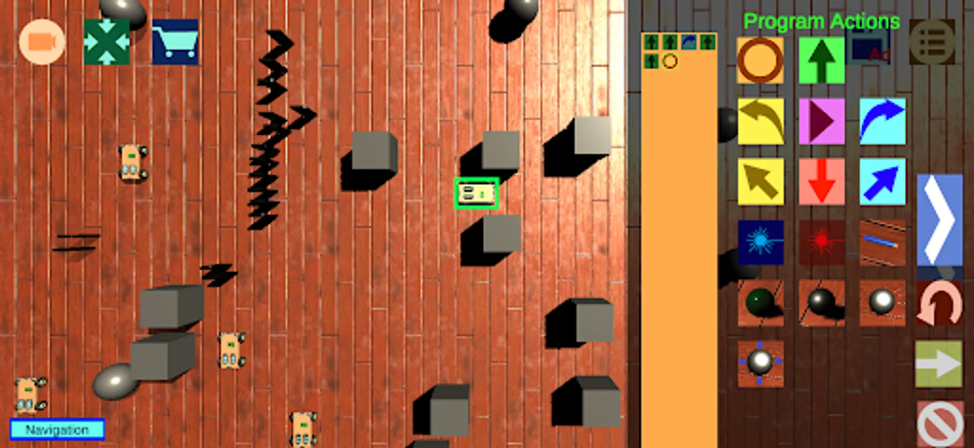 Robot simulator teaches basic coding concepts in a fun and interactive way. Setup your obstacle course anyway you like. Then program your robot, or multiple robots, to navigate through the obstacle course using simple commands. Robots can move forward, backward, turn left or right. They can also project lasers, fire foam darts and launch other projectiles to clear their way.