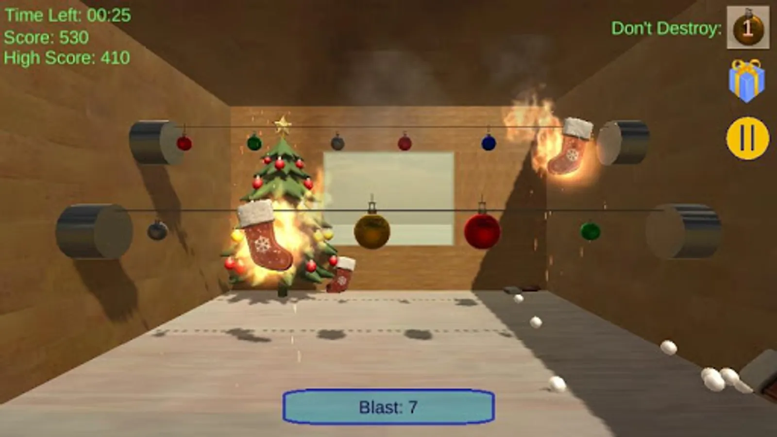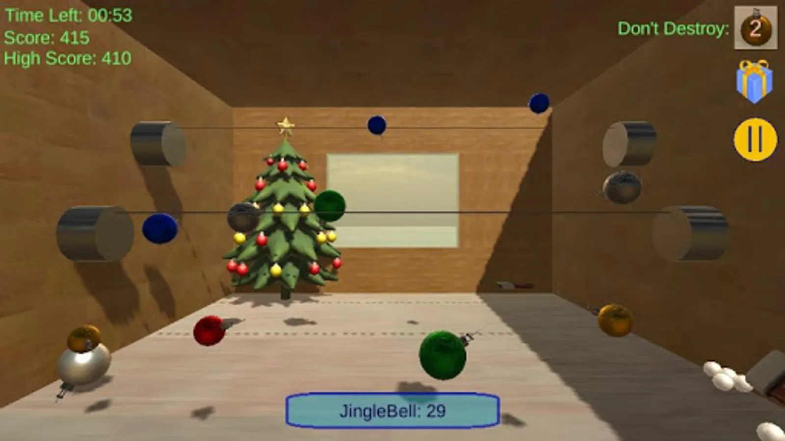 Have fun knocking down and shattering Christmas ornaments. Destroy as many ornaments as you can but be careful; during each round one ornament is selected that you must avoid knocking down.. The further away ornaments are, the more they are worth.