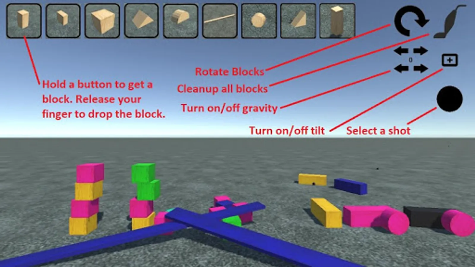 -Build a block tower then tap anywhere on the screen to throw a ball at it and knock it down