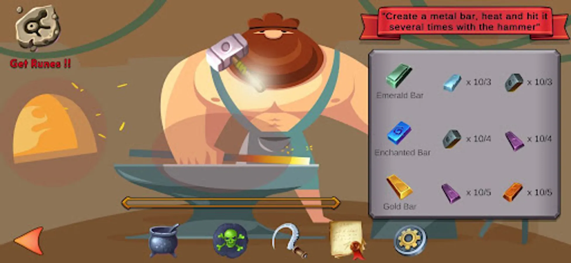 Tendrás que conseguir materiales para crear los objetos que se piden en las misiones. Al luchar con los enemigos y derrotarlos nos darán materiales para la forja. Consigue runas para completar el desafío y ganar oro para ser el numero UNO.
