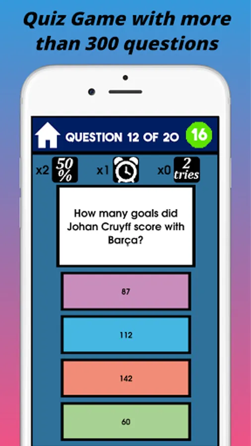 Barcelona Soccer Quiz is a Trivia-type game, where you must demonstrate your knowledge of the Barça football team by answering more than 300 questions about Players, Honors and History about this great club in the Spanish league.