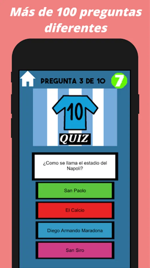 Maradona Quiz is a Trivia-type game in homage to Diego Armando Maradona, a footballer for Napoli, the Argentine soccer team and FC Barcelona, among others.