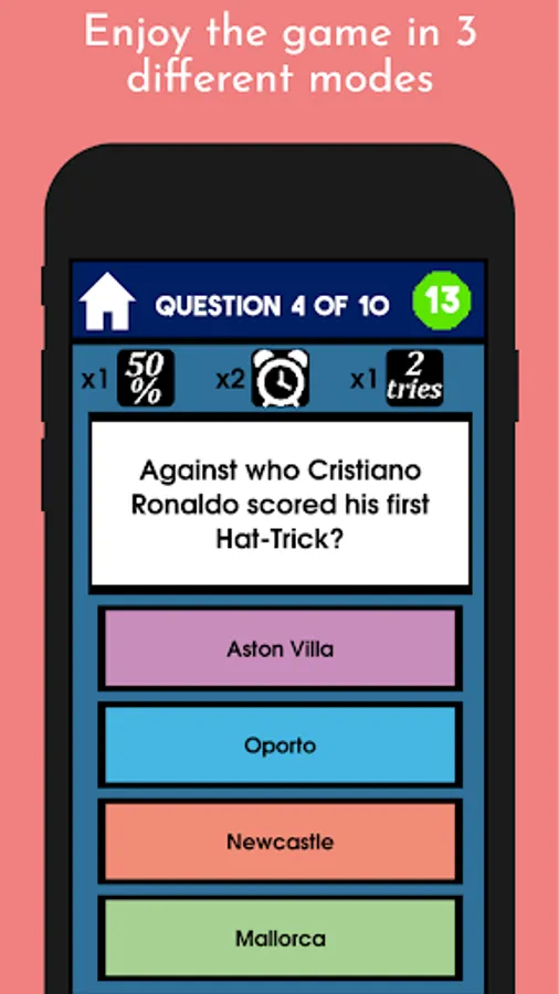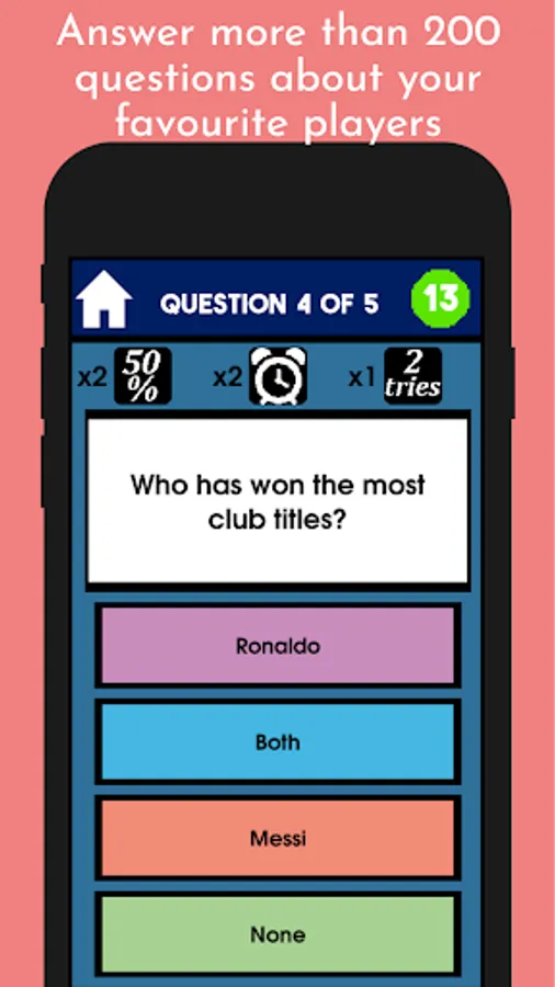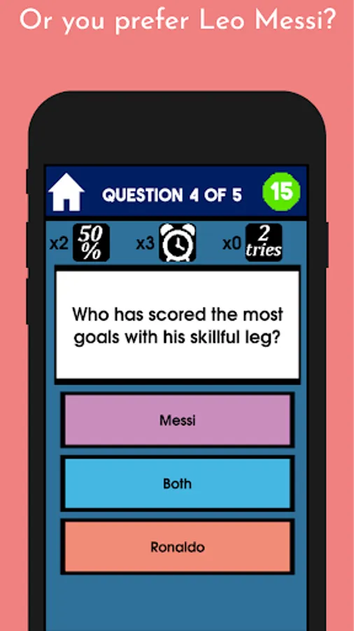 Messi VS Ronaldo Quiz is the definitive trivia game, where you can show how much you know about Argentine Crack and Portuguese with more than 200 questions that will be shown in random order and will never be repeated within the same game.