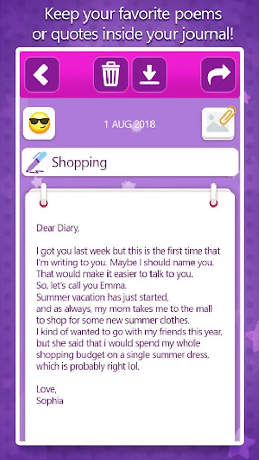 If you don't want anyone to spy on you and find out some important information from your life, you can write them down in your personal diary. Everything that you type in your new journal app free will be safe from intruders because this is a diary with lock protection. Use this fingerprint lock diary for girls and no one will be able to open it because of your unique fingerprint lock. Or you can choose a pattern lock screen because this is also a secret diary with pattern lock for girls. And finally, if it's easier for you to remember numbers, this Journal With Lock - Secret Diary journal with password also has an option to be your personal diary with number lock. So download this handy diary with password for girls and enjoy my diary with a lock app for girls!