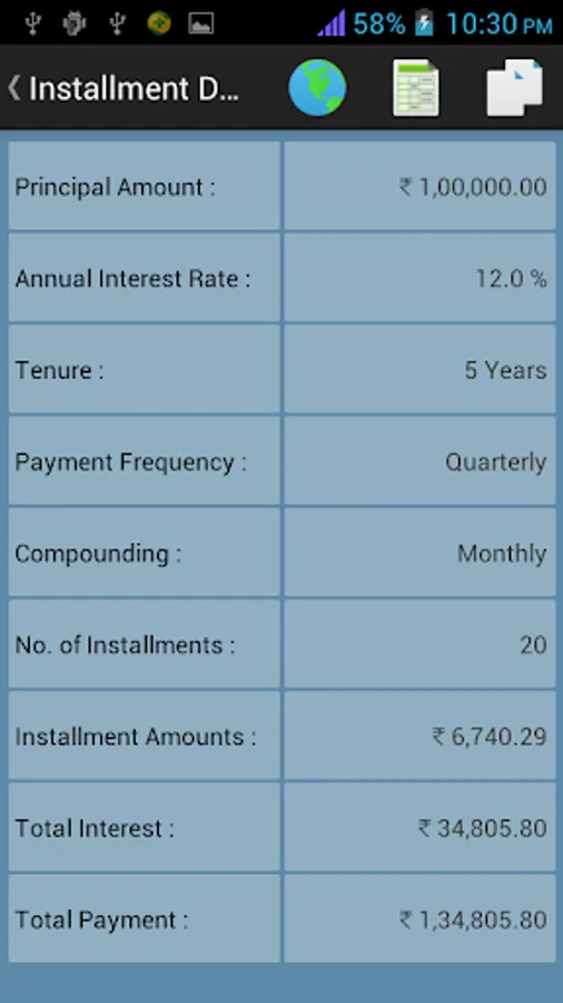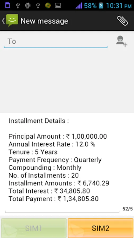 • Share/Copy calculation details(via. message, email, Whatsapp, and many more).