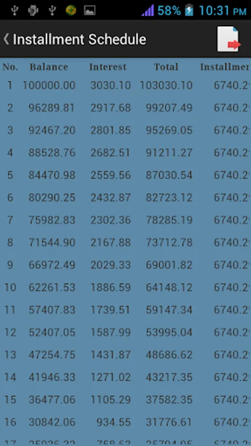 • Export Schedules/Amortization Tables as ".xls" (Excel) file.