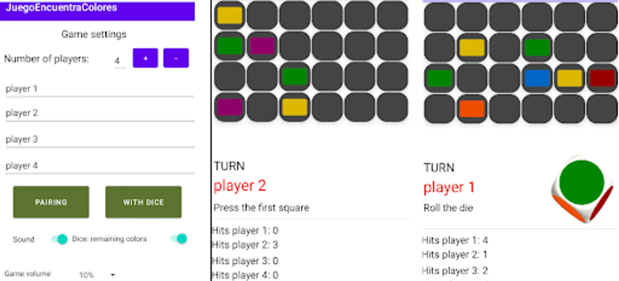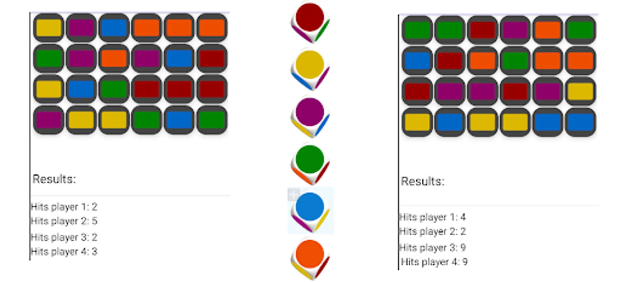 1 -> It is played with a dice where 6 different colors come out and you have to hit it.