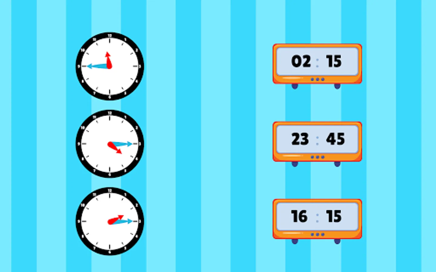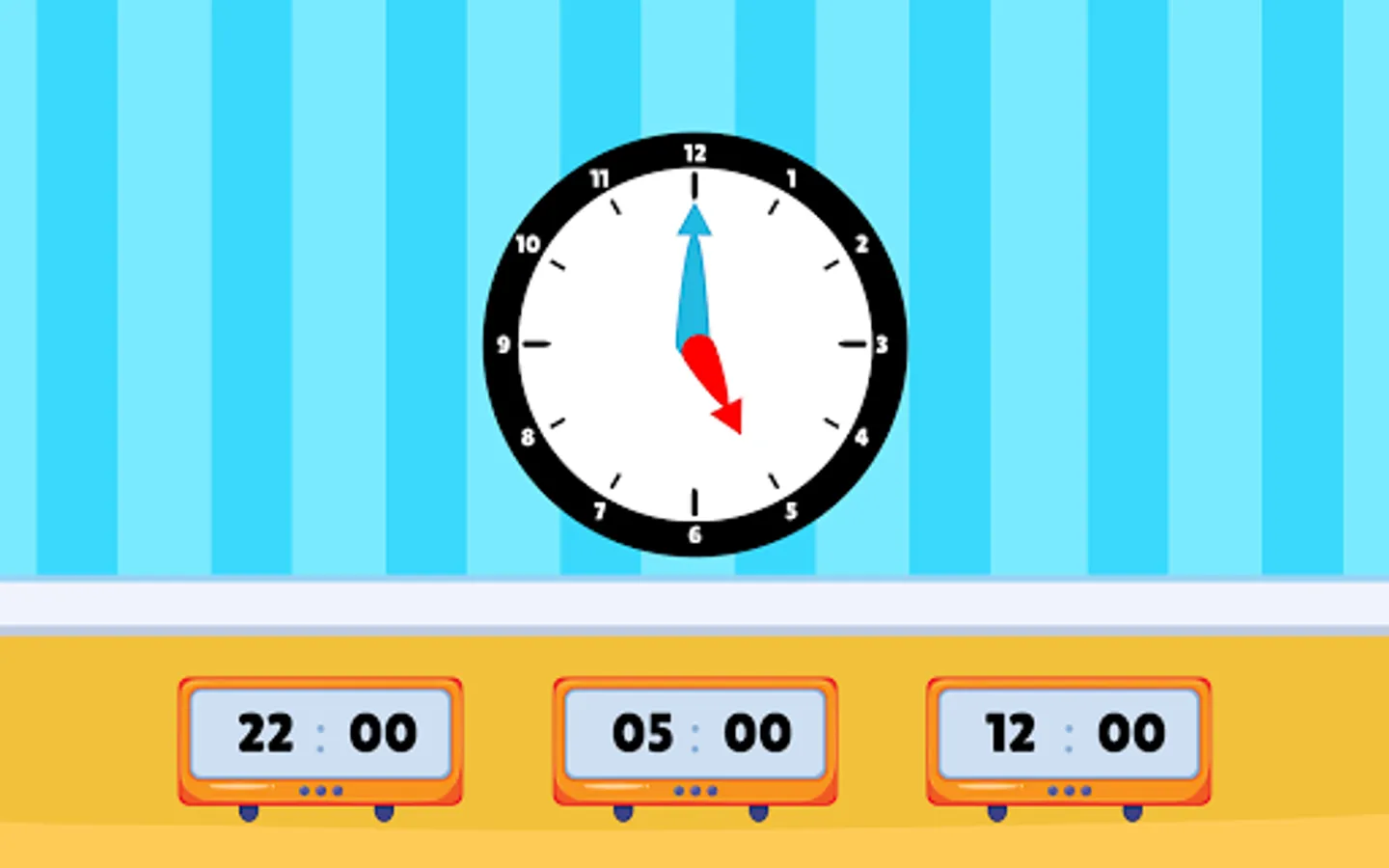 With this app, children practice clock telling on a clock (analog clock) and a digital clock.