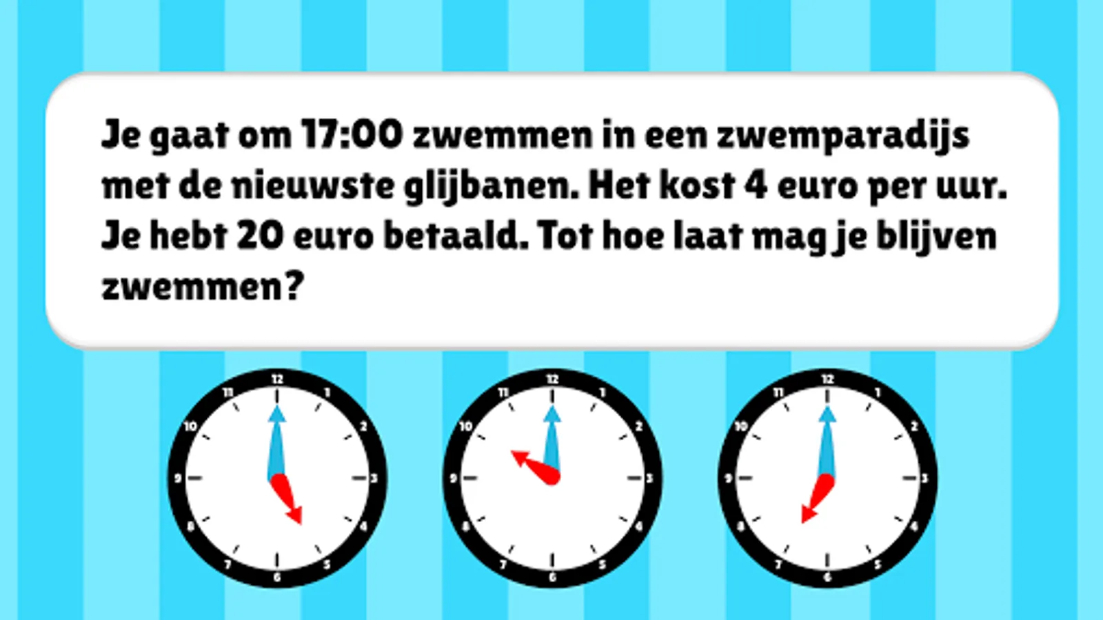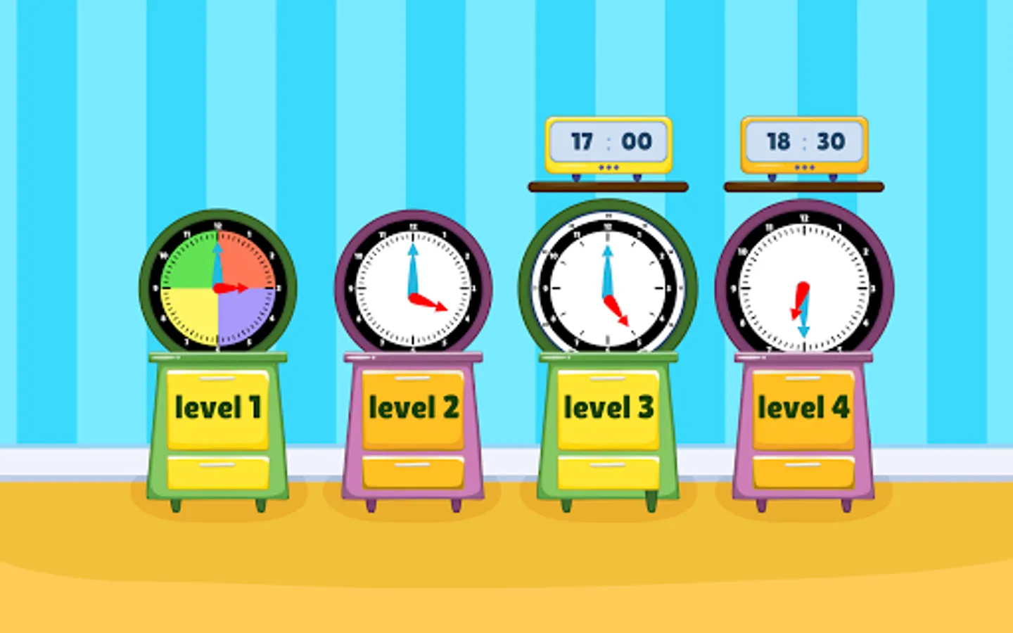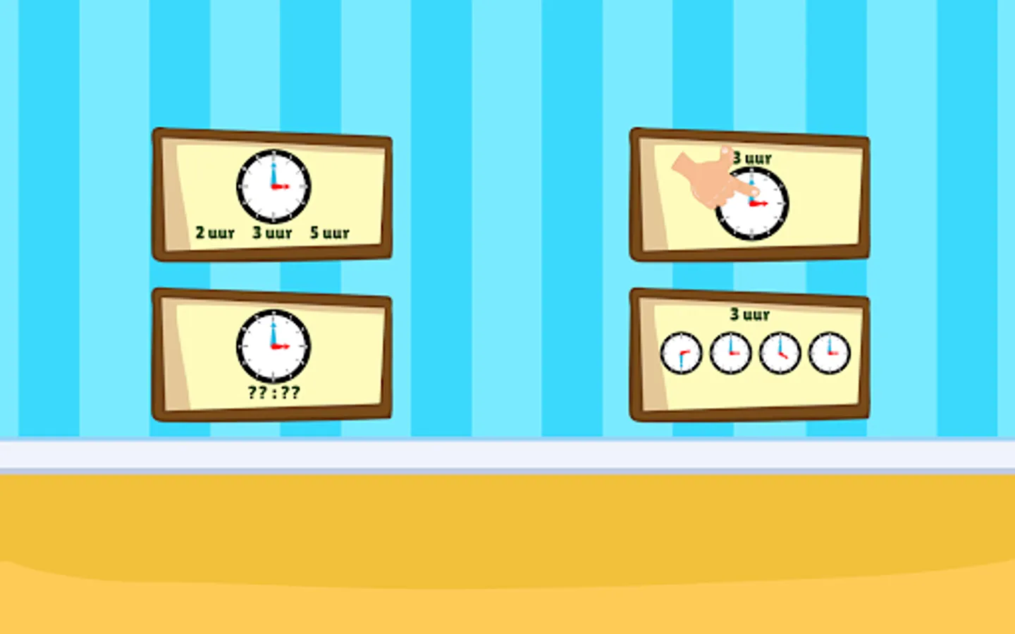 Is the entire clock reading correct? Then your child can practice with the digital clock at level 3. If reading both clocks goes well, your child can practice with time awareness at level 4.
