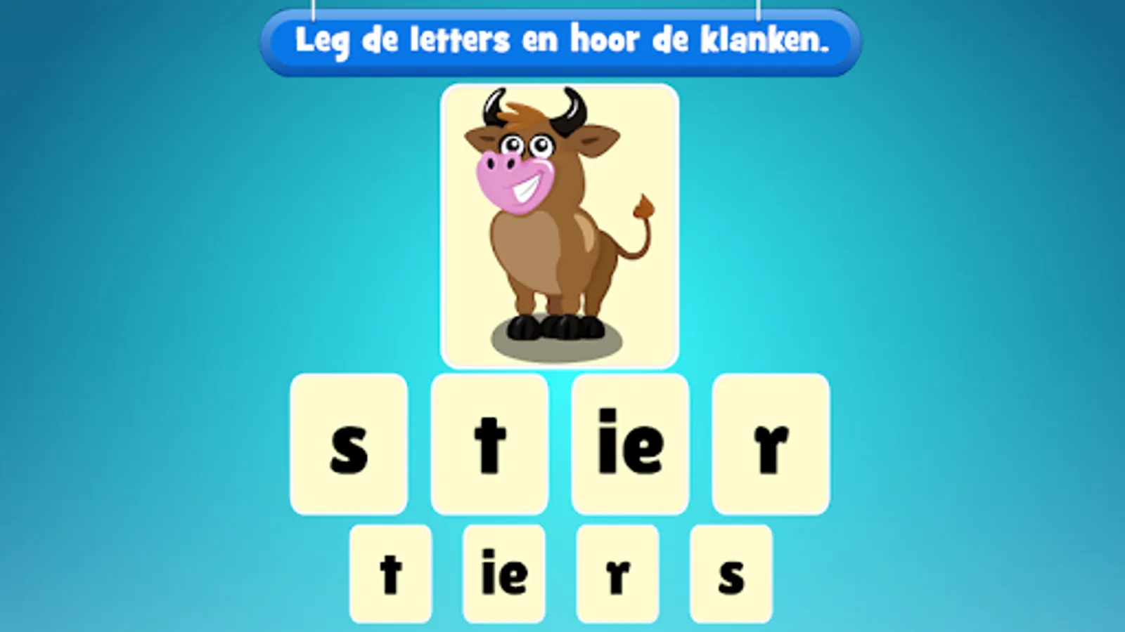 The app shows the correct sounds of the letters and letter groups (oe, aa).
