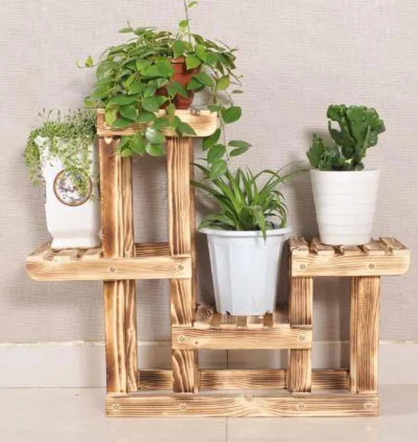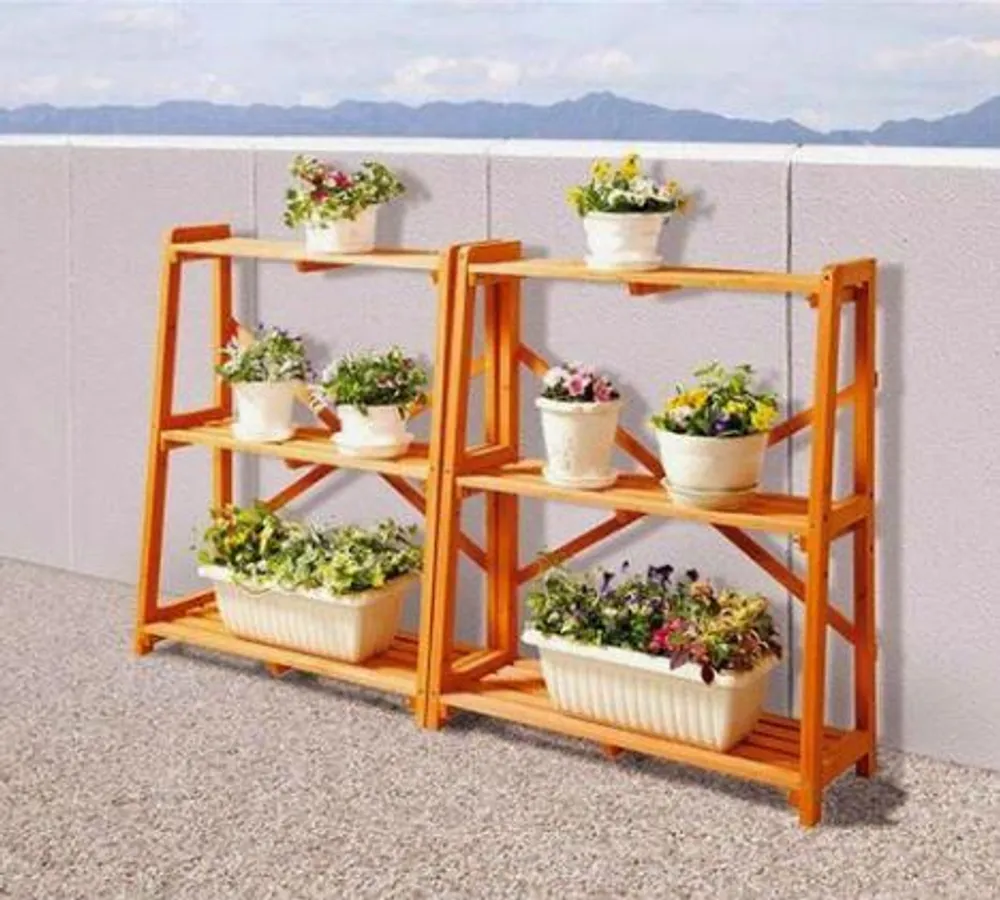 This application provides pictures of flower pot racks of good quality using wood and iron.